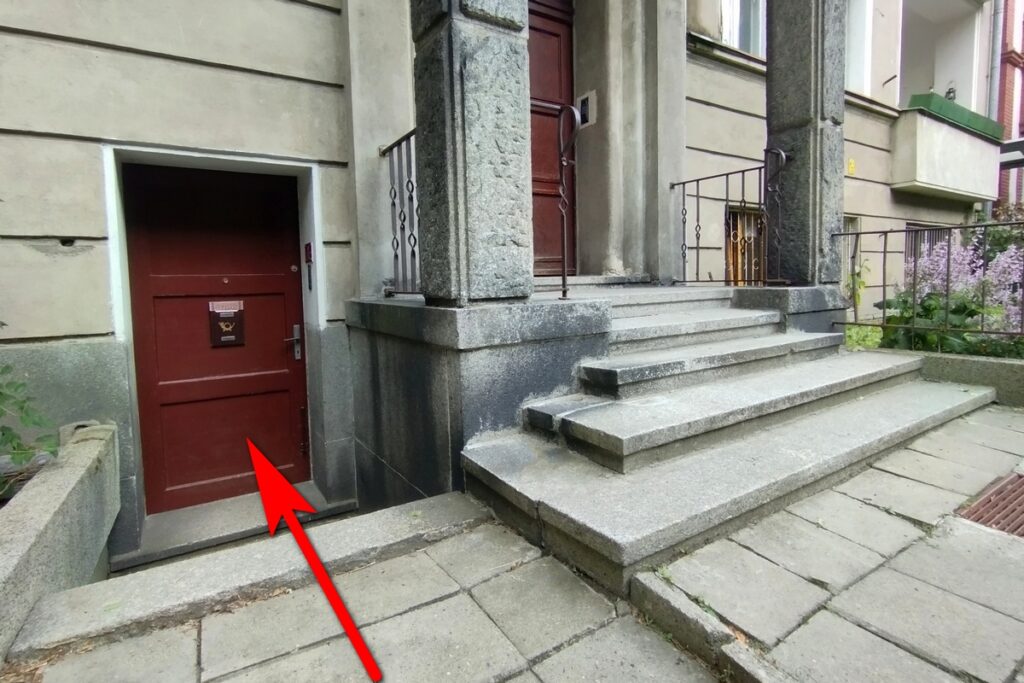 Ośrodek znajduje się w suterenie, wchodzi się bocznym wejściem – po lewej stronie głównych drzwi do budynku, 2 schodki w dół. Jest osobny domofon.